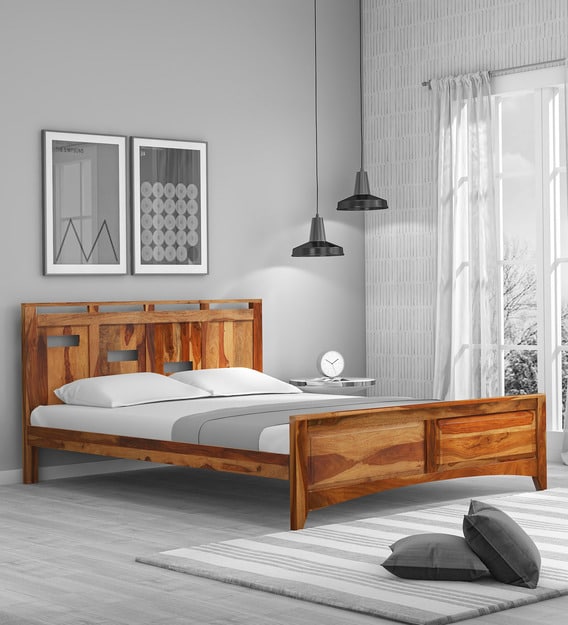 Buy Biscay Solid Wood King Size Bed Without Storage In Rustic Teak Finish Woodsworth By Pepperfry Online Modern King Size Beds Beds Furniture Pepperfry Product