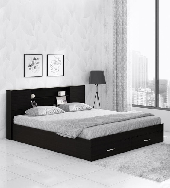 Buy Caily King Size Bed With Drawer Storage In Wenge Finish Mintwud By Pepperfry Online Modern King Size Beds Beds Furniture Pepperfry Product